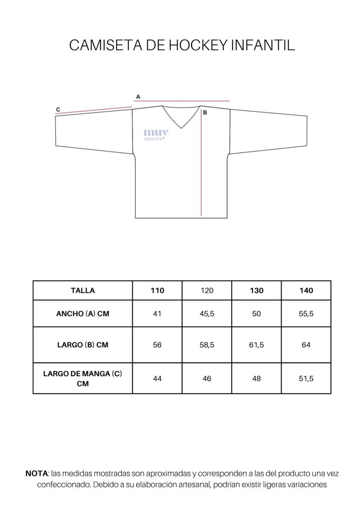 Camiseta de hockey personalizable con sublimación full print, confeccionada en tejido bird eyes 100% poliéster, 140 gsm/m2. Disponible en tallas infantiles y adultas.
